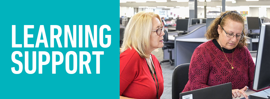Learning Support can help you with English, Maths and general study skills. The Learning Support staff can work with you in class, in the library or online. They can help you understand the course work and assist you to complete the course and gain a qualification.